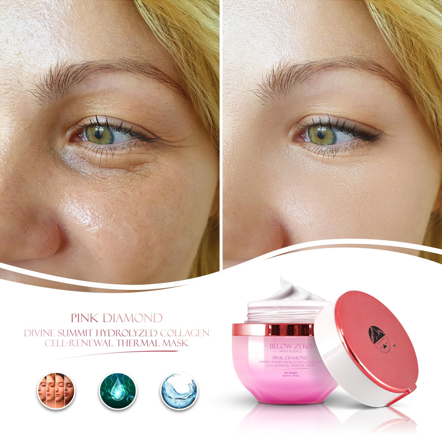 Below Zero Pink Diamond Divine Summit Hydrolyzed Collagen Cell-Renewal Thermal Mask